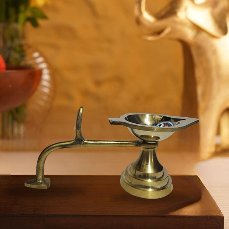 Illuminate your prayers with this elegant Single Aarti crafted from pure brass. Featuring a traditional design with a sturdy handle and deep diya bowl this piece is perfect for daily rituals poojas and festive ceremonies. The brass construction ensures durability and a timeless shine adding a sacred glow to your devotional space.